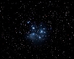 M 45; mag 1.5; size 109'; 21 min (21x60sec); Canon 200mm f/2.8 lens; ISO 1600; IDAS; 2-24-09; Coyle